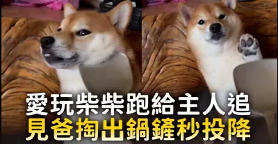 愛玩柴柴跑給主人追 見爸掏出鍋鏟秒投降