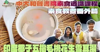 【素食教煮】中大和聲書院素食通識課程番外篇:教學生煲印度椰子五指毛桃花生雪耳湯|袪濕素湯,鮮和甜兼備|加一種材料,令素湯產生純素乳化作用,做出老火湯效果|學生分享:比媽咪的葷食老火湯更好喝!|中文字幕